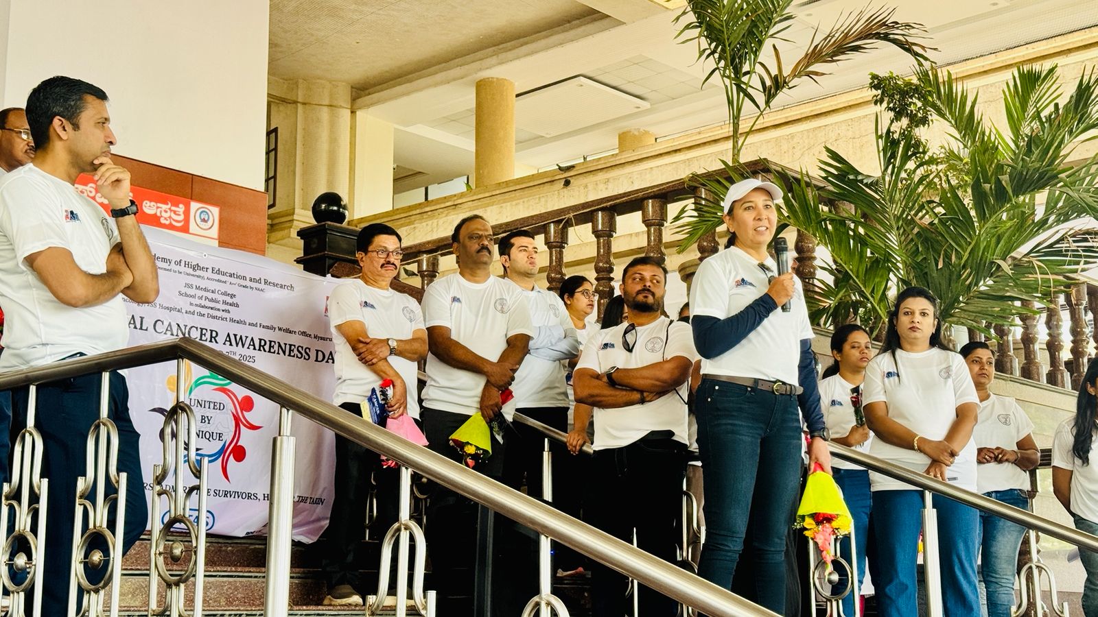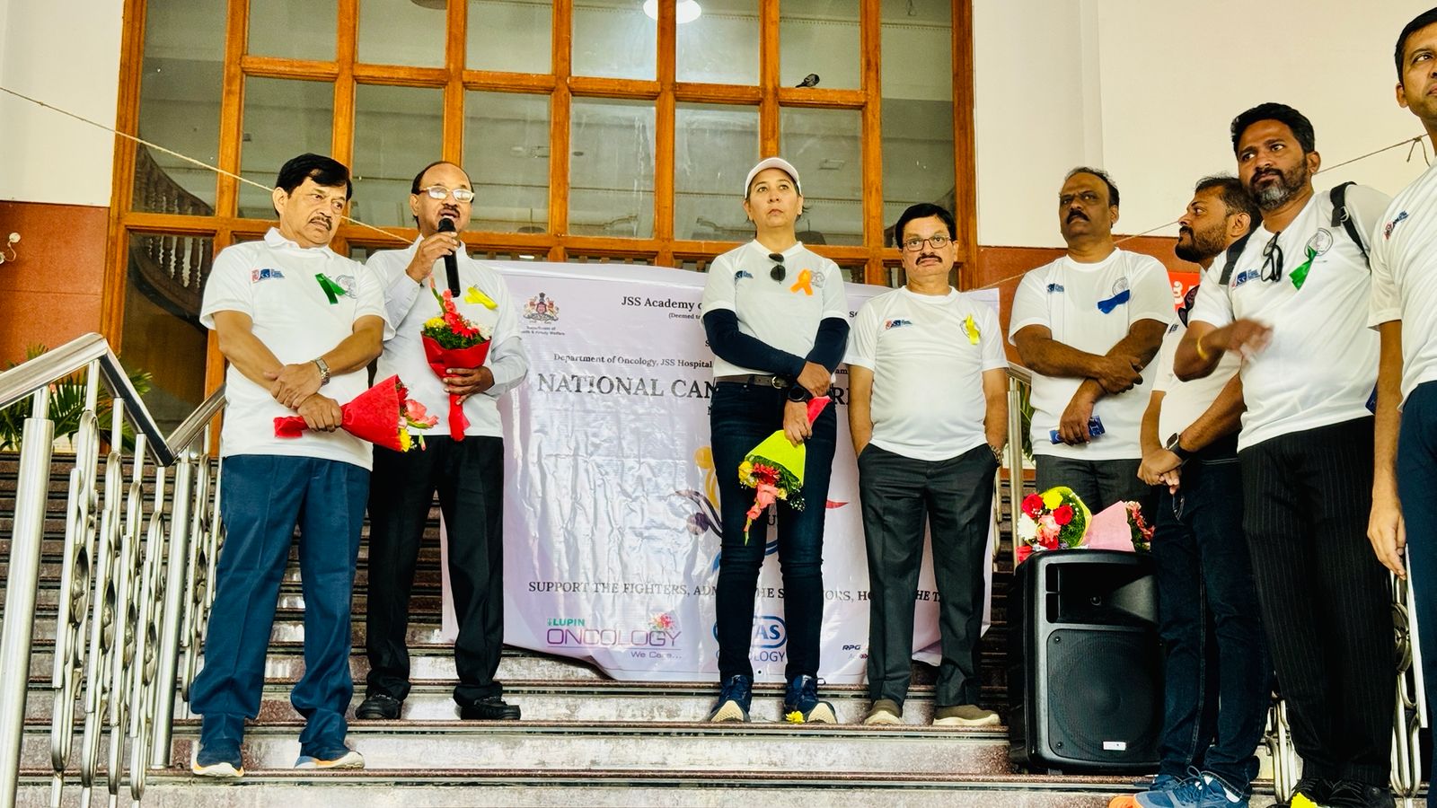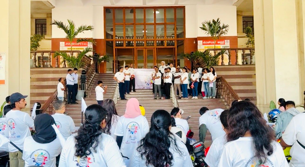 National Cancer Awareness Day 2025 was marked with great enthusiasm by the School of Public Health, JSS Medical College, as over 200 participants—including students, faculty, health officials, and the Bulls of Mysuru Bikers' MC—joined an inspiring bike rally from JSS Hospital to JSS Medical College to spread the message of cancer prevention and early detection across Mysuru. The event was inaugurated by Dr. H. Basavanagowdappa, Vice Chancellor, JSS AHER; Dr. Narayanappa D, Principal, JSS Medical College; and Dr. Madhu C. P., Director, JSS Hospital, and was graced by Guest of Honour Dr. Nagaraj D. G., District Surveillance Officer, Department of Health & Family Welfare, and Special Guest of Honour Dr. Brinda S. Godhi, Associate Professor, JSS Dental College, whose inspiring Kashmir to Kanyakumari (K2K) cycling expedition—3,658 km in 22 days advocating for oral cancer awareness—brought added energy and meaning to the day. The event strengthened inter-departmental collaboration, promoted community engagement, and motivated everyone present to become proactive advocates for a healthier, cancer-free future.