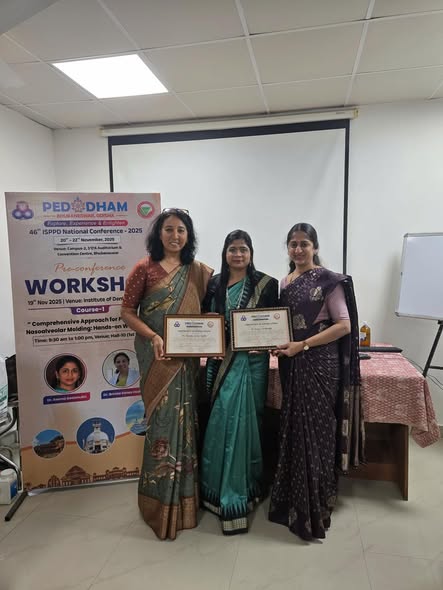 We are proud to share that our faculty members, Dr. Seema Deshmukh and Dr. Brinda Suhas Godhi, successfully conducted a pre-conference workshop at the 46th ISPPD National Conference – Pedodham 2025, organized by the Indian Society of Pedodontics and Preventive Dentistry (ISPPD)