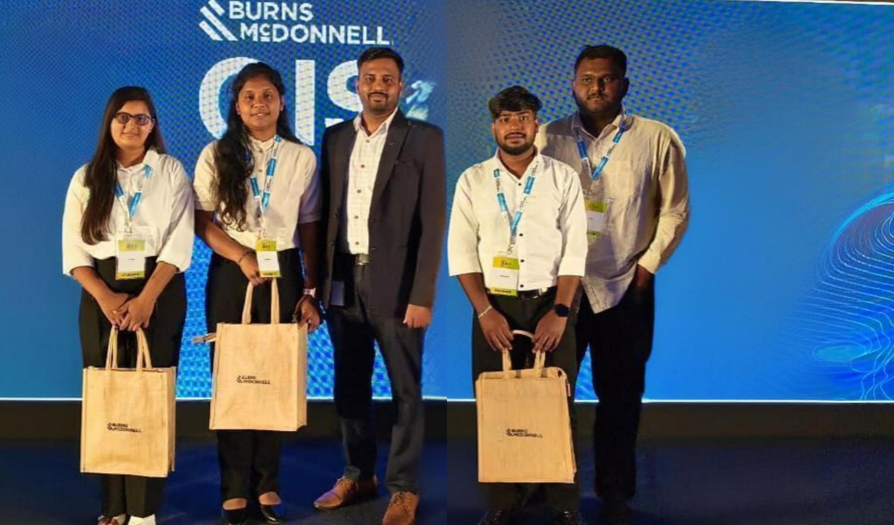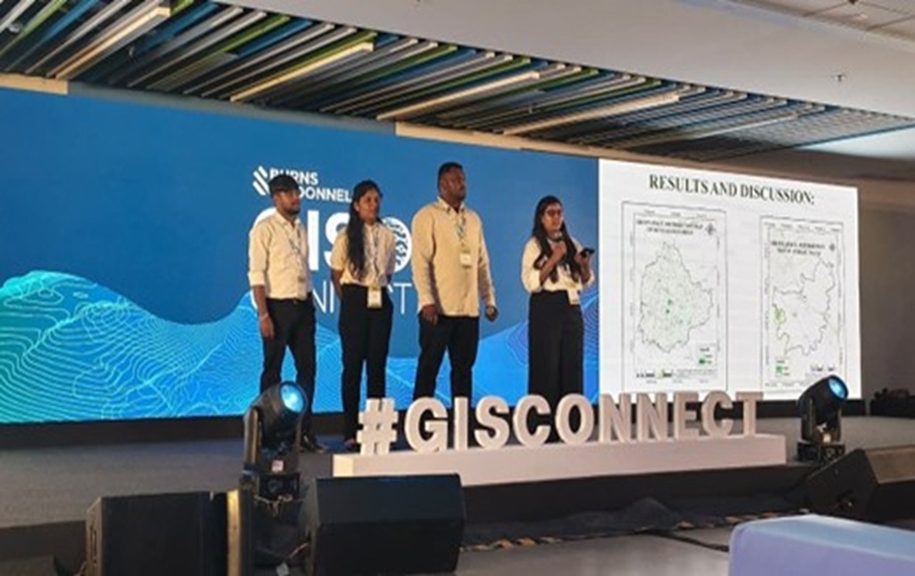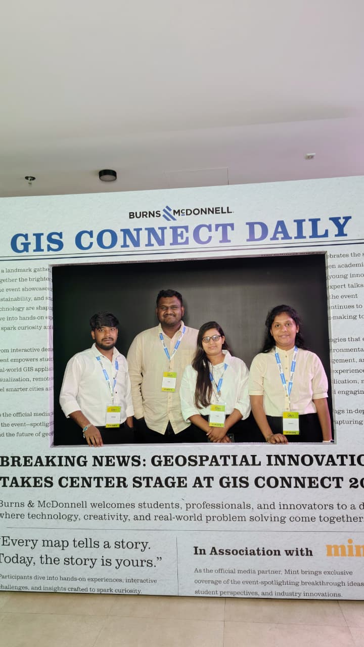 Students from the Division of Geoinformatics, School of Life Sciences, JSS Academy of Higher Education & Research (JSS AHER), Mysuru, participated in GIS CONNECT-2025, an annual national-level geospatial innovation event organized by Burns & McDonnell India. The program was held at Godrej IT Park, Vikhroli West, Mumbai, on 18 November 2025, bringing together emerging GIS talent from across the country to showcase innovative geospatial solutions and technical competence. The student team “Urban Beats”, comprising Ms. Pooja B. Kuri, Mr. Uday Belagatti, Mr. Prosenjit Dalui, and Ms. Deepthi B, represented the Division of Geoinformatics and secured the Third Place in the National GIS Student Competition. The team presented a project titled “Urban Green Space Optimization”, which demonstrated advanced spatial analysis, suitability modelling, and GIS-based decision support methodologies. Their presentation included comprehensive thematic maps, analytical outputs, and insights reflecting strong problem-solving skills and technical proficiency. Participation in GIS CONNECT-2025 provided the students with significant exposure to real-world geospatial applications and facilitated interaction with experts, industry leaders, and peers from various institutions across India. The event served as a valuable platform for students to engage in discussions on innovation, sustainability, and emerging trends in GIS, further strengthening their academic and professional perspectives. The Division of Geoinformatics acknowledges the consistent guidance and mentorship provided by Dr. Sushant Sawant Anil, Associate Professor & Coordinator, and Mr. Mahesh D. B., Faculty of Geoinformatics, which contributed to the successful performance of the student team. Appreciation is also extended to the panel members, including Ms. Tapsi Puri, PMP®, and Mr. Govind Gadiyar, for their thoughtful evaluation and constructive feedback that enhanced the students’ learning experience. The achievement of Team Urban Beats at GIS CONNECT-2025 stands as an important milestone for the Division, reflecting the quality of geospatial education and the academic excellence nurtured at JSS AHER. Their performance highlights the institution’s commitment to fostering innovation, research capability, and industry-oriented GIS skills among its students. Overall, the participation in GIS CONNECT-2025 has been academically enriching and motivational for the students, inspiring further pursuit of excellence in GIS, spatial analytics, and sustainable development research.