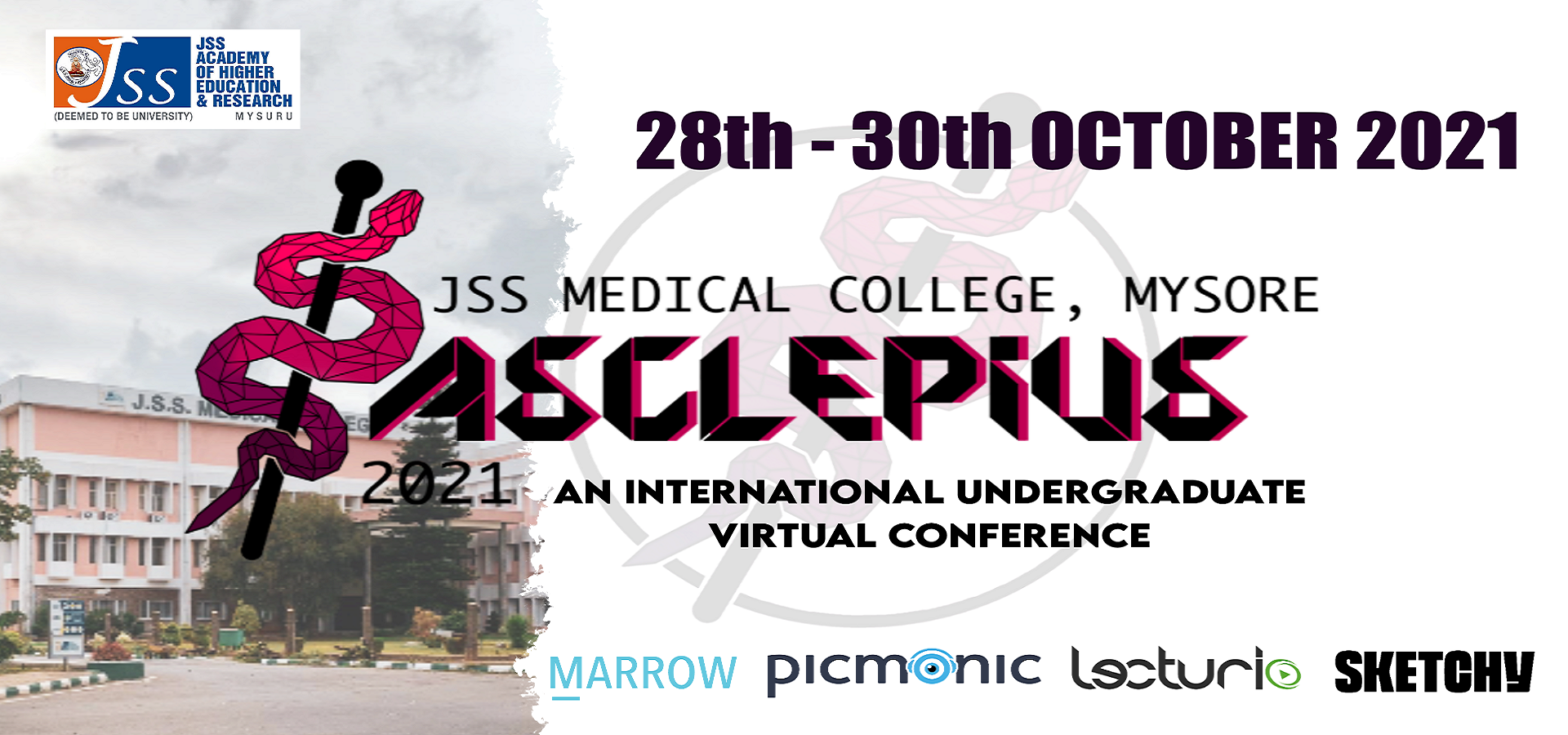 Asclepius is back! The journey started in JSS MEDICAL COLLEGE, JSS Academy of Higher Education and Research, Mysuru back in 2018 followed by the year 2019 that proved to be a huge success, in which there were immense improvements made, and then the pandemic hit but Asclepius 2020 carried forward the legacy completely online!