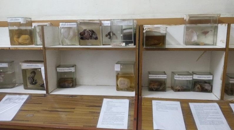 In the department of OBG, JSS hospital we have a museum with around 30 anatomical specimens of various pathological conditions of obstetric and gynecological importance. These specimens are used for teaching undergraduate and postgraduate students and are helpful in better understanding of the subject and the management of the patient. Anatomical Specimen consists of various pathologies like fibroids, ovarian cysts, uterine anomalies, normal fetus, placenta, fetusus with congenital anomalies. Students can appreciate and learn about each of the pathological condition through the description provided along with the specimen. We also have 20 colour charts describing the various important topics like various gynecological cancers and its staging, maternal pelvis and fetal skull, complicated labour management. They give a pictorial description of various topics and help in better understanding of the subject. Our museum is used for the assessment of students during their internals and during their university examination