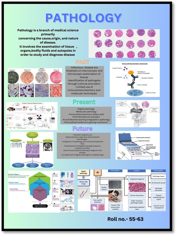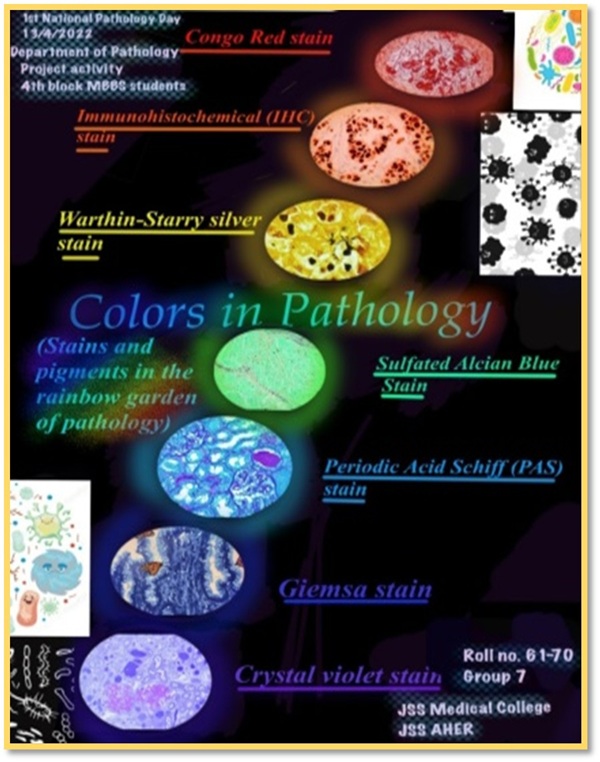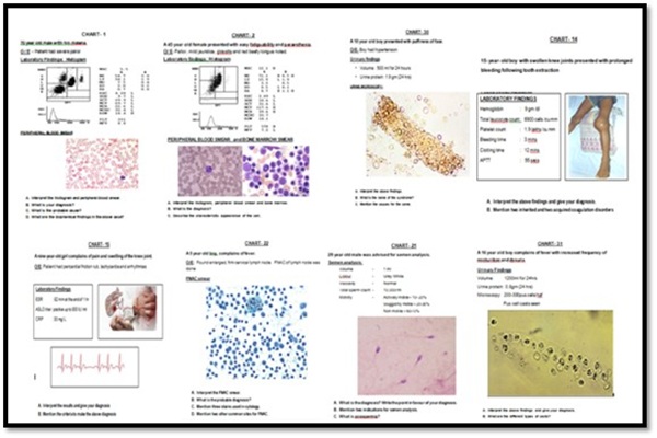 Students are assigned cases covering many organ systems and diagnoses with brief clinical vignettes pointing to the diagnosis, and an additional study or clinical test. With this they make the final diagnosis and discuss the pathology of the disease using innovative strategies such as making presentations, concept maps, e-posters, skits, blackboard teaching, presentations, mime, role play and jingles. Criteria for assessment included content, conceptualisation and presentation.